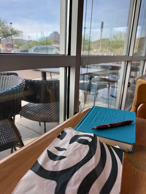 Today is our thirty-fifth anniversary. Lori is at the tiny house finishing paint along the trim, and I’m at Starbucks six miles away, doing what I always do—writing, watching people. A group nearby, dressed for something formal, shares quiet laughter before piling into a white Wagoneer. In the corner, an older man tells a younger one he’ll “walk through the fire with him.” I half-listen, half-wonder if he means it.